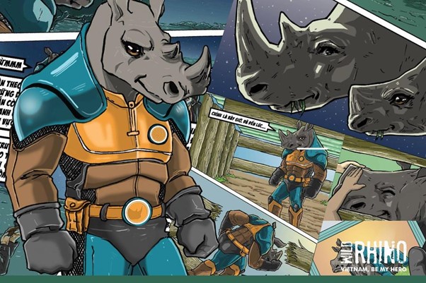 Cái tên đầu tiên của loạt bài post này sẽ là Rhino Ranger, hay Kiểm Lâm Tê Giác thuộc chiến dịch “WILD RHINO VIETNAM, BE MY HERO” của Wilderness Foundation Africa tại Nam Phi. Rhino Ranger xuất thân là một bạn tê giác trắng, một trong hai loài tê giác còn tồn tại ở Phi Châu cho đến nay. Bi kịch xảy đến khi cậu phải chứng kiến mẹ của mình bị bọn thợ săn sát hại cách dã man chỉ để lấy sừng đem đi kiếm lời. May mắn được các kiểm lâm cứu sống và nuôi dưỡng tại khu bảo tồn thiên nhiên, Rhino Ranger luôn nhớ cái ngày mẹ mình bị giết, cậu căm hận bọn thợ săn chỉ vì lòng tham mà khiến cậu mồ côi mẹ. Vì lẽ đó, cậu quyết tâm tập luyện, ăn uống đẩy đủ để trở nên khỏe mạnh. Cuối cùng, bạn tê giác trắng yếu ớt ngày xưa nay đã trở thành một Siêu Anh Hùng Rhino Ranger và cũng là nhân vật đại diện cho những Chiến Binh Tê Giác tại Việt Nam và Châu Phi. Để tìm hiểu thêm về hành trình của Rhino Ranger, các bạn có thể tìm comic Kiểm Lâm Tê Giác của WILD RHINO nhé!