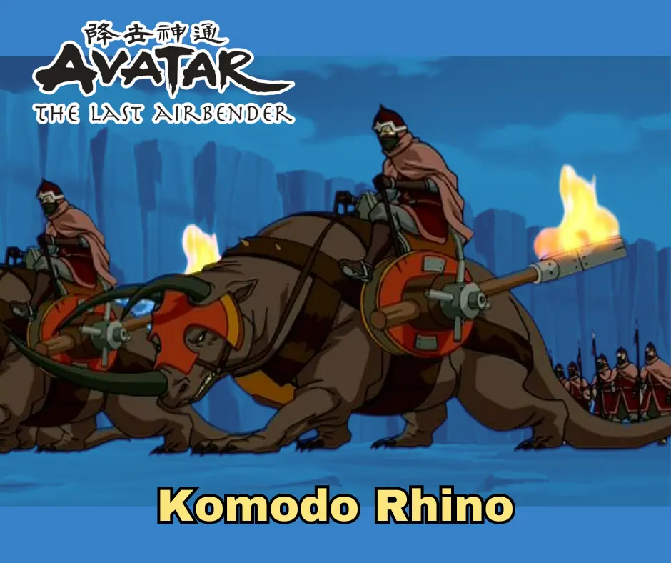 Avatar: The Last Airbender kể về Aang, cậu bé 12 tuổi và cũng là Avatar cuối cùng, người duy nhất có thể điều khiển cả bốn nguyên tố. Sau 100 năm bị đóng băng, Aang tỉnh dậy và phát hiện Hỏa Quốc đang thống trị thế giới. Cùng với Katara và Sokka, Aang lên đường học cách điều khiển tất cả nguyên tố để đánh bại Hỏa Vương Ozai và khôi phục hòa bình. Trong hành trình, họ đối đầu với Hoàng tử Zuko, người ban đầu săn đuổi Aang nhưng sau này trở thành đồng minh. Trong phim, ta sẽ thấy một loài thú có tên Komodo Rhino, một loài vật từ Hỏa Quốc với chiếc sừng tựa như sừng tê giác, được nuôi để làm thú lao động, phục vụ chiến tranh và dân sự, cũng như lấy thịt để làm xúc xích Komodo.