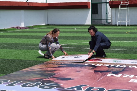 Ms Almut Roessner, Executive Director of EuroCHAM, and Mr Thanh Bui, CEO of SOUL Corporation positioning the final piece of the rhino puzzle.